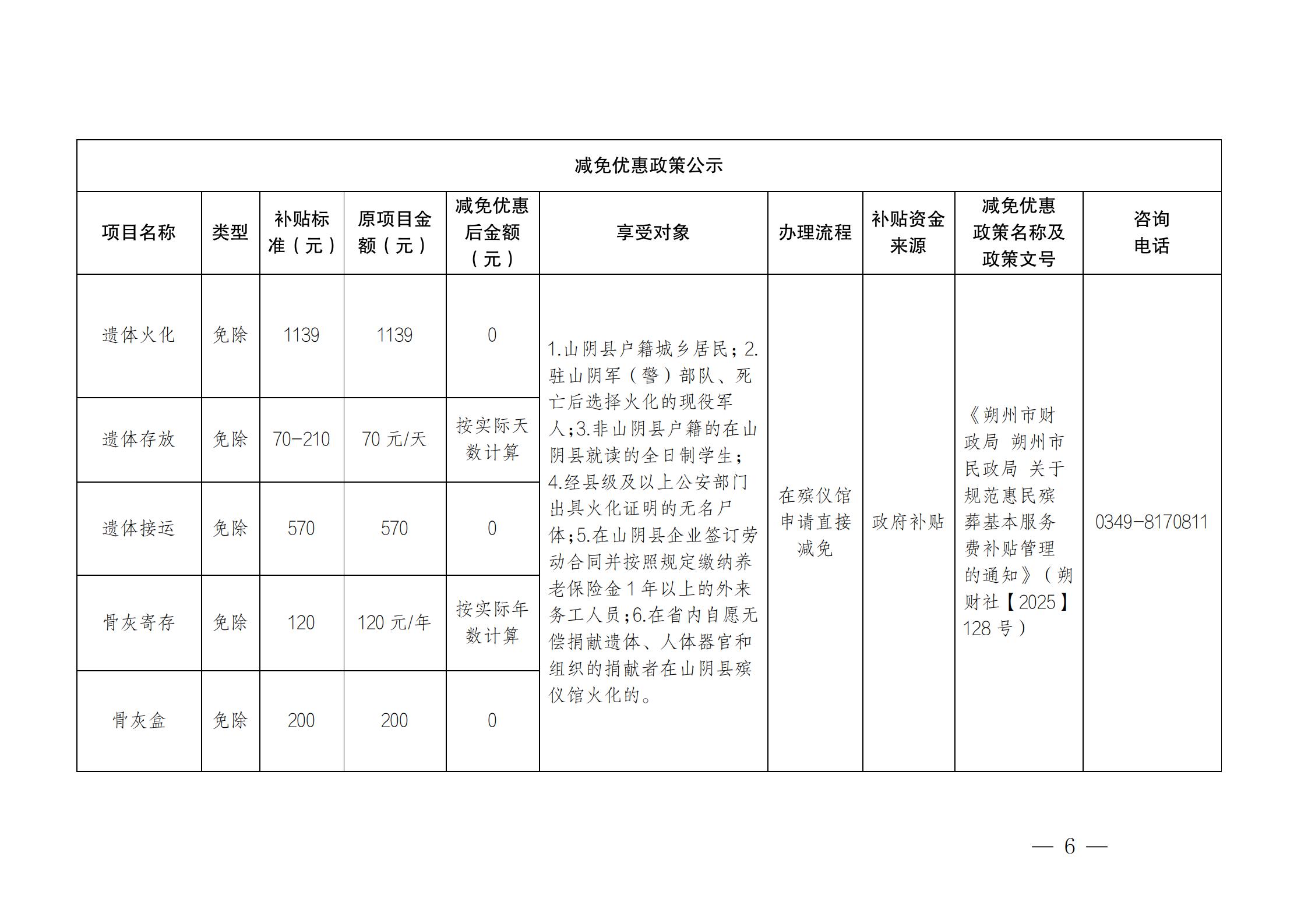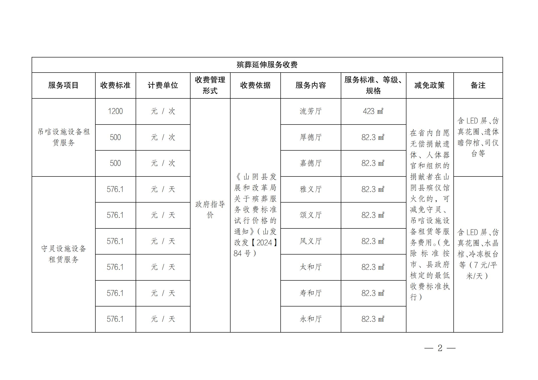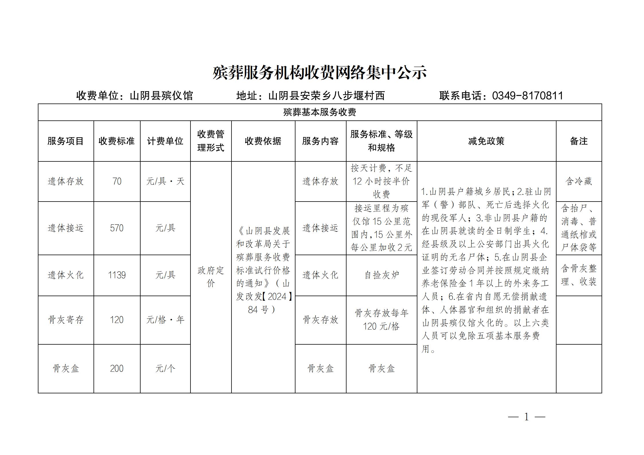 殡葬服务机构收费网络集中公示(山阴县殡仪馆)